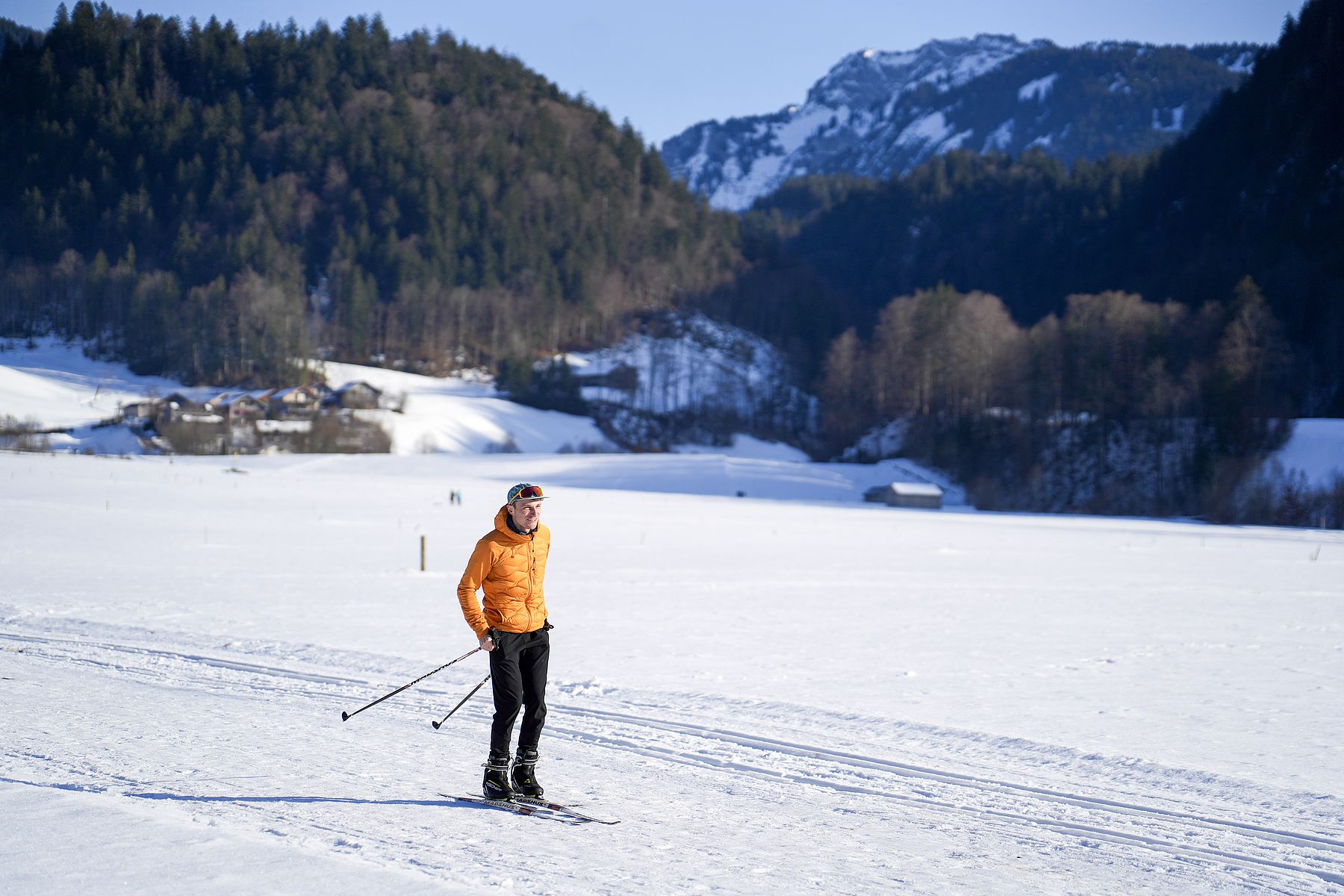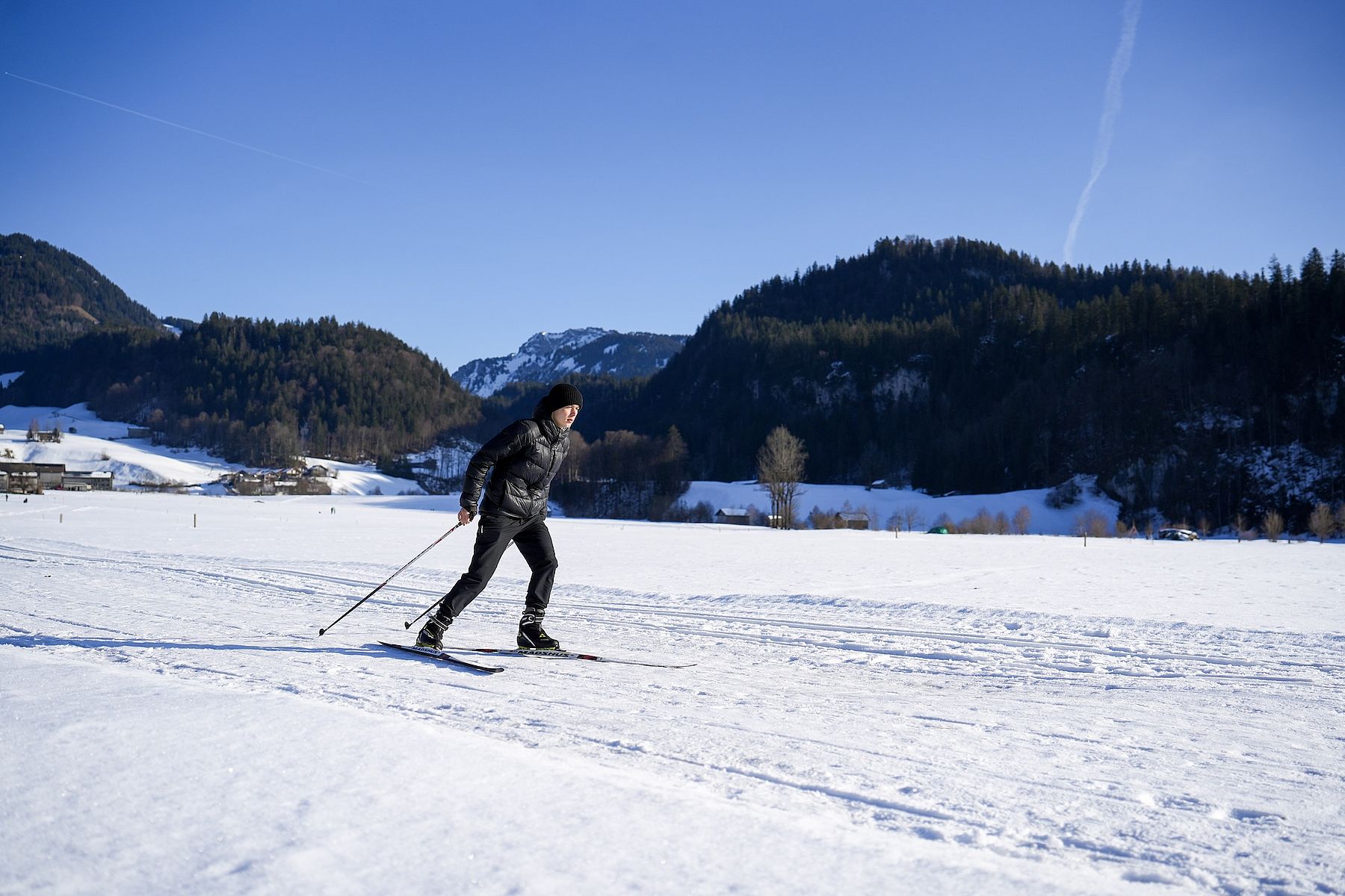300 kilometres of cross country tracks are prepared every winter in Bregenzerwald. Taking you through river meadows and snowy forests, wide fields, passing birch groves and the traditional wood shingled houses.