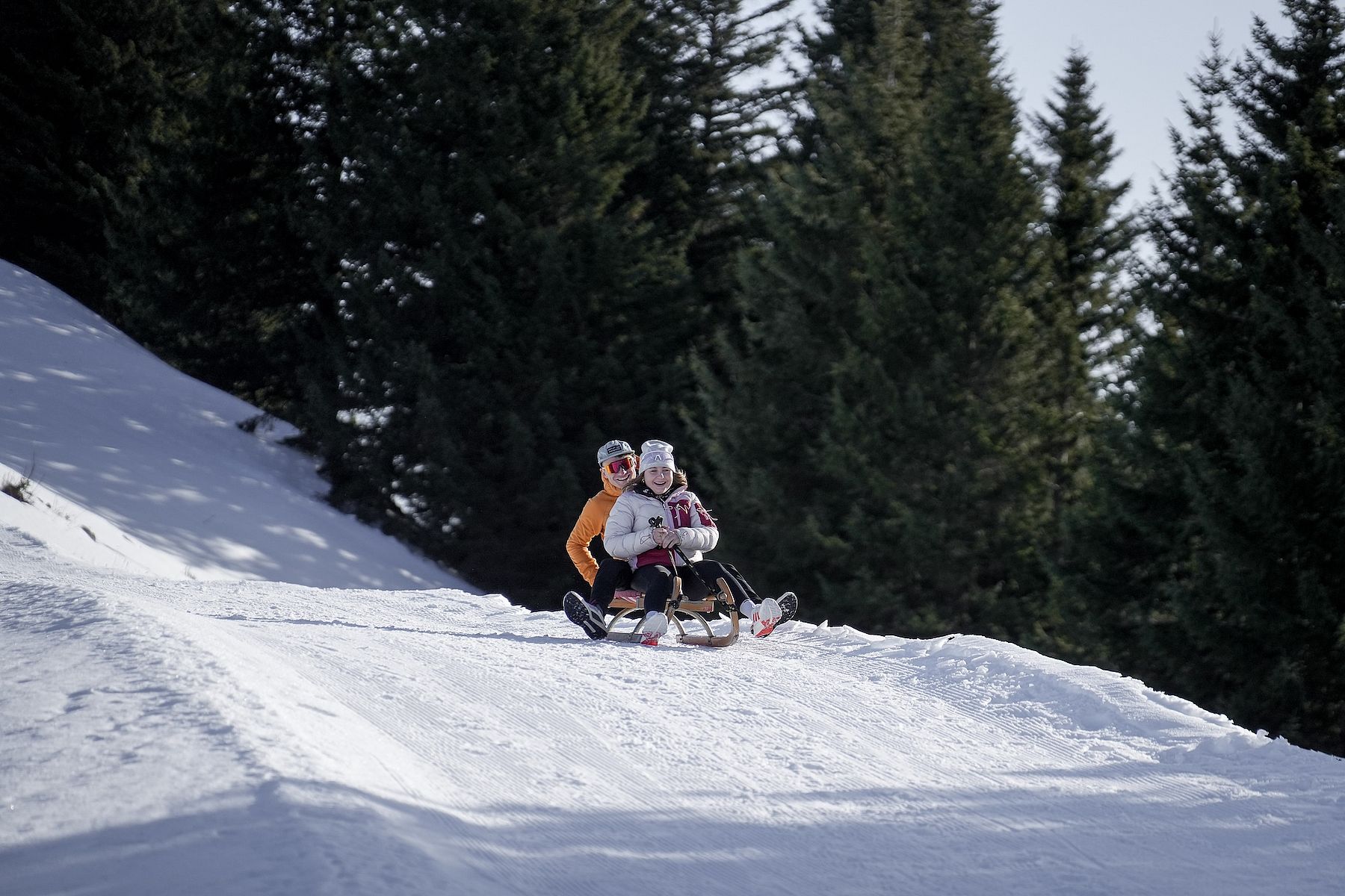 Ein Winterspaß für Groß und Klein sind die Bregenzerwälder Naturrodelbahnen. Zwei davon gibt’s im Urlaub in Bezau: mit der Seilbahn fahren Sie hoch zur Bergstation und von dort geht’s auf der 3 km langen, rasanten und kurvigen Rodelstrecke hinunter bis zur Mittelstation – da bleibt es selten, bei nur einer Rodelfahrt. Im „Gschwend“ geht’s etwas gemütlicher zu, die knapp 2 km lange Strecke läuft man gemütlich hoch, bis in die späten Abendstunden kann dort gerodelt werden, denn die Naturrodelbahn ist bis 23:00 beleuchtet.